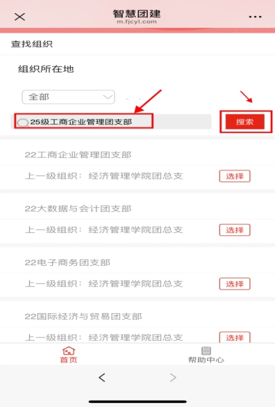1、搜索转入团支部一定要全称,例:25级工商企业管理团支部。