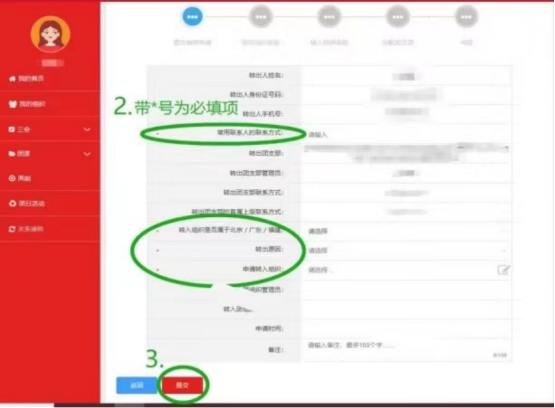 1.请各位新生团员严格按照上述操作流程填写转入组织,将团组织关系转至各院下设团支部,直接将团组织关系转入共青团厦门南洋职业学院委员会的申请不予审核通过,需重新申请。