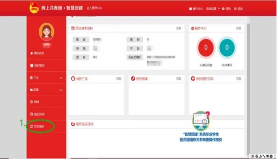 l 团组织关系转入登录后在首页左侧列表找到“关系接转”选项
