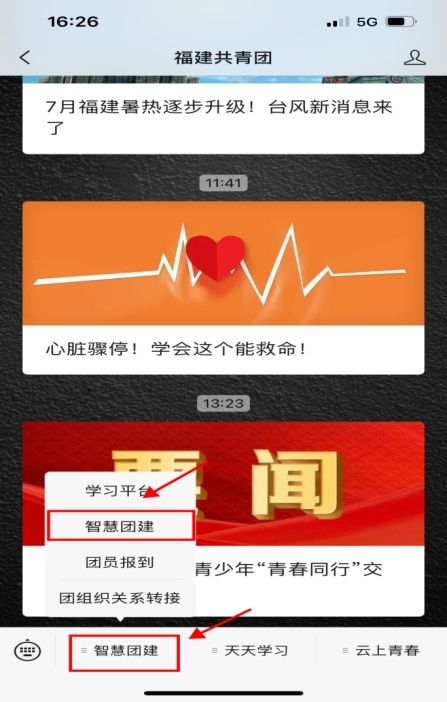 点击“智慧团建”菜单栏---“智慧团建”选项