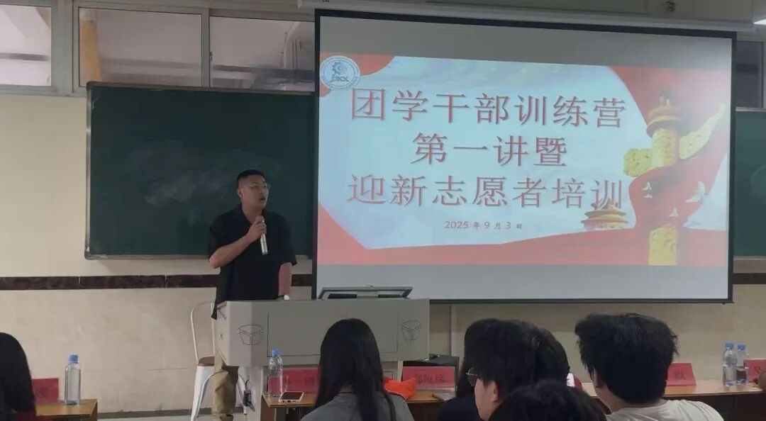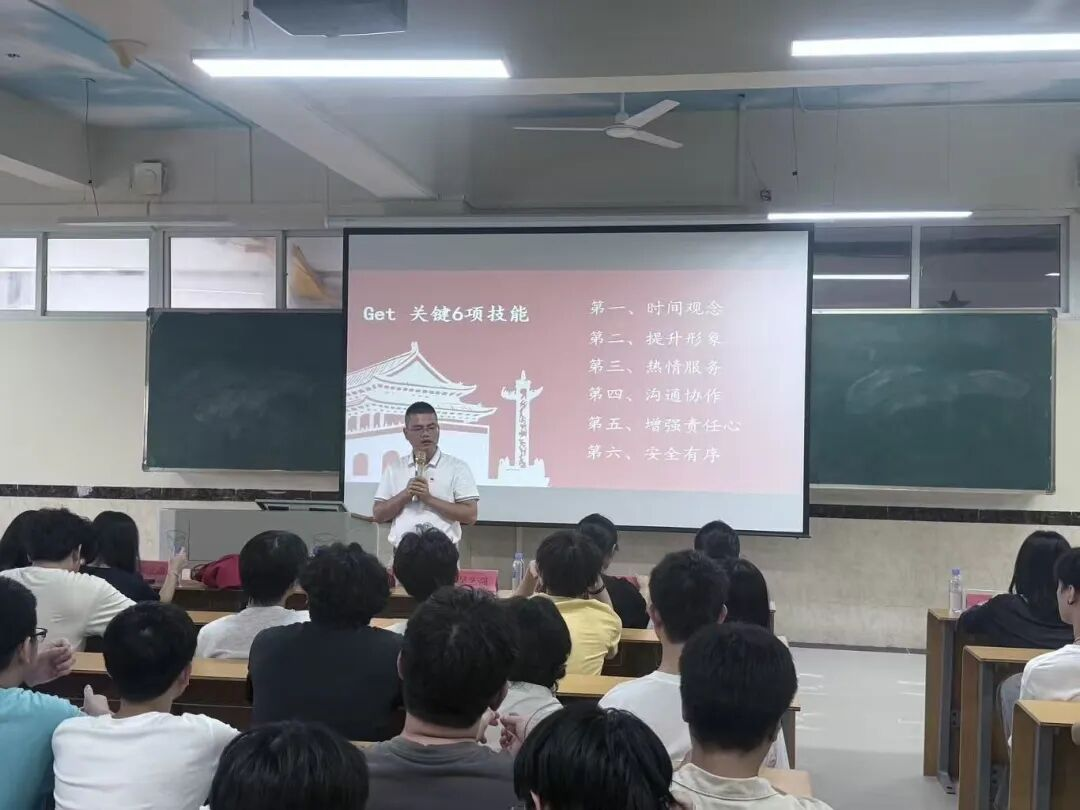 党总支书记吴艺强在培训现场,从关键的六项技能展开,为团学干部及志愿者们指明方向,为迎新工作注入强有奠定坚实基石。他强调沟通与协作的重要性,鼓励大家以饱满的热情和高度的责任感迎接新同学,确保迎新工作有序、高效、温暖进行。