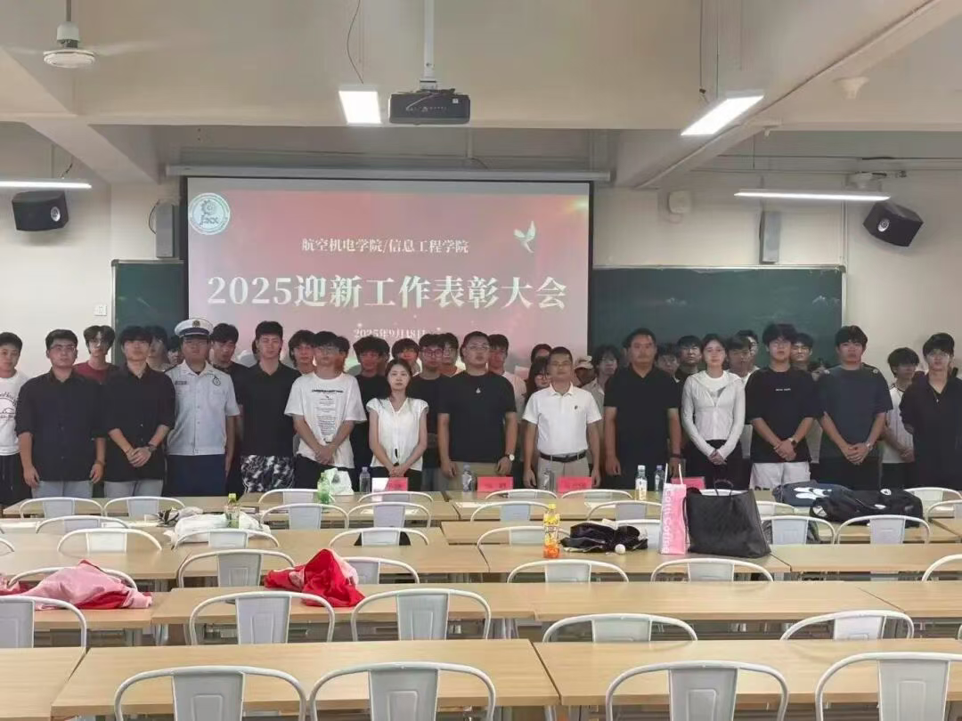 2025年9月18日中午12:30分航空机电学院/信息工程学院于教学楼A401圆满举办2025迎新工作表彰大会。