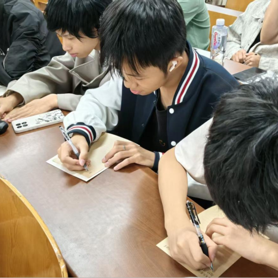 书写环节全程伴随“南洋发展史”主题视频循环播放,屏幕上流转着学校从建校至今的关键发展节点与重要成就,让在场人员在笔墨间更深刻地感受南洋25年的成长与荣光。大家有序领取信纸与信封,将对未来的憧憬、对自我的期许,以及与班级的温暖记忆落于纸上。小班在场地内巡视,及时补充物资、维护秩序,确保每个人都能在安静专注的氛围中沉淀思绪。