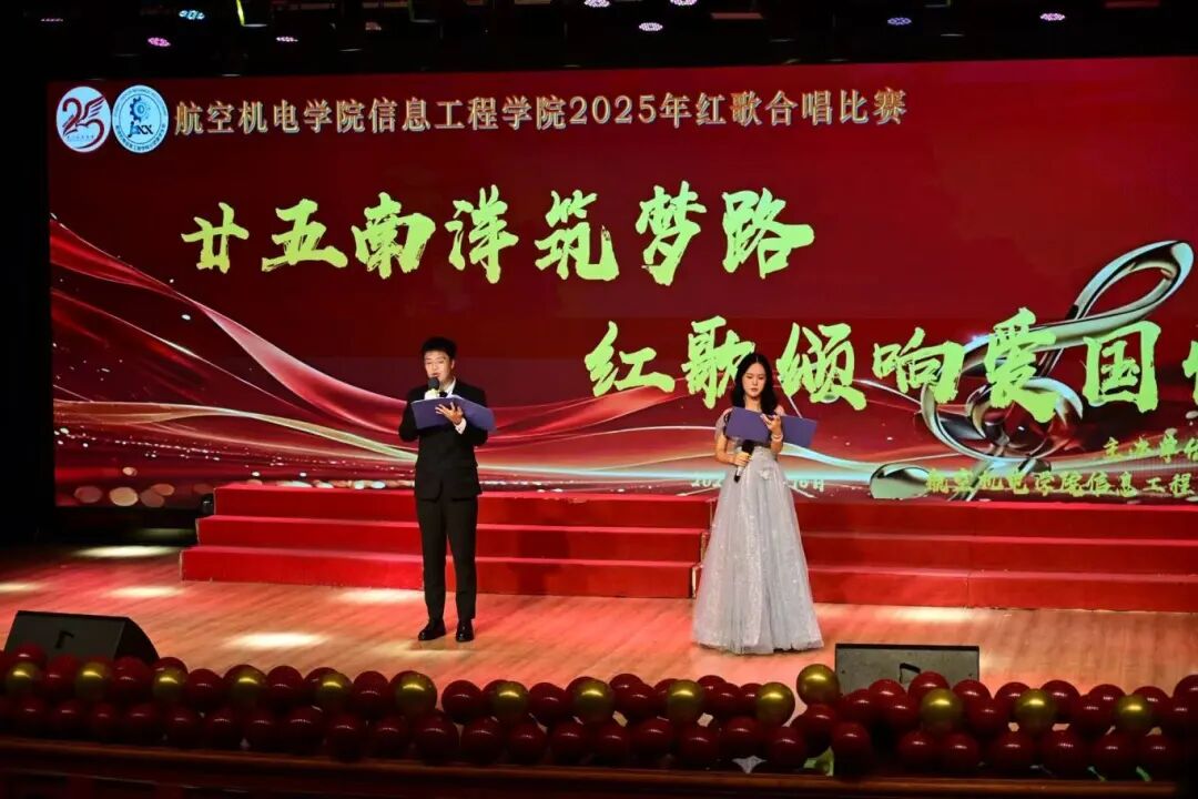 2025年12月4日19:00,航空机电学院/信息工程学院在创业活动中心小礼堂举办的 “廿五南洋筑梦路,红歌颂响爱国情”红歌赛。旋律里藏着青春理想,歌声中饱含爱国热忱,一曲曲经典曲目轮番上演,既有激昂奋进的力量,又有婉转深情的韵味,为现场观众带来沉浸式视听享受,让红色激情随音符涌动,让青春精彩在舞台绽放!