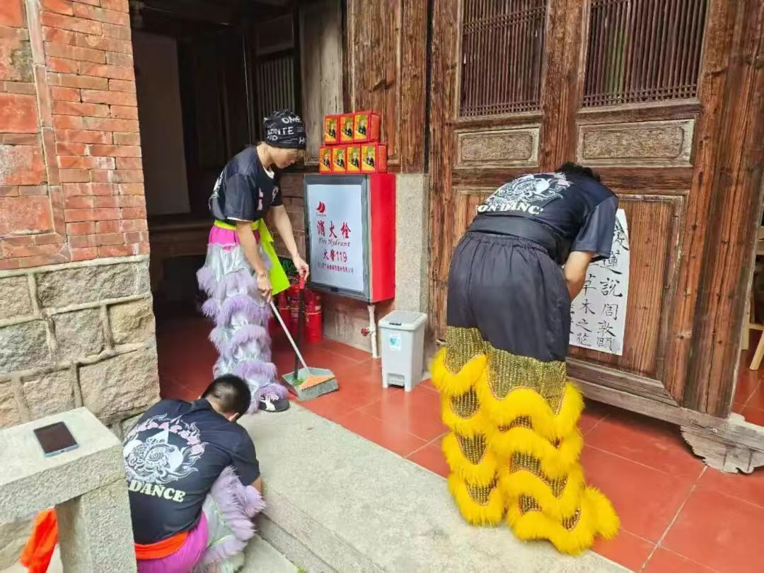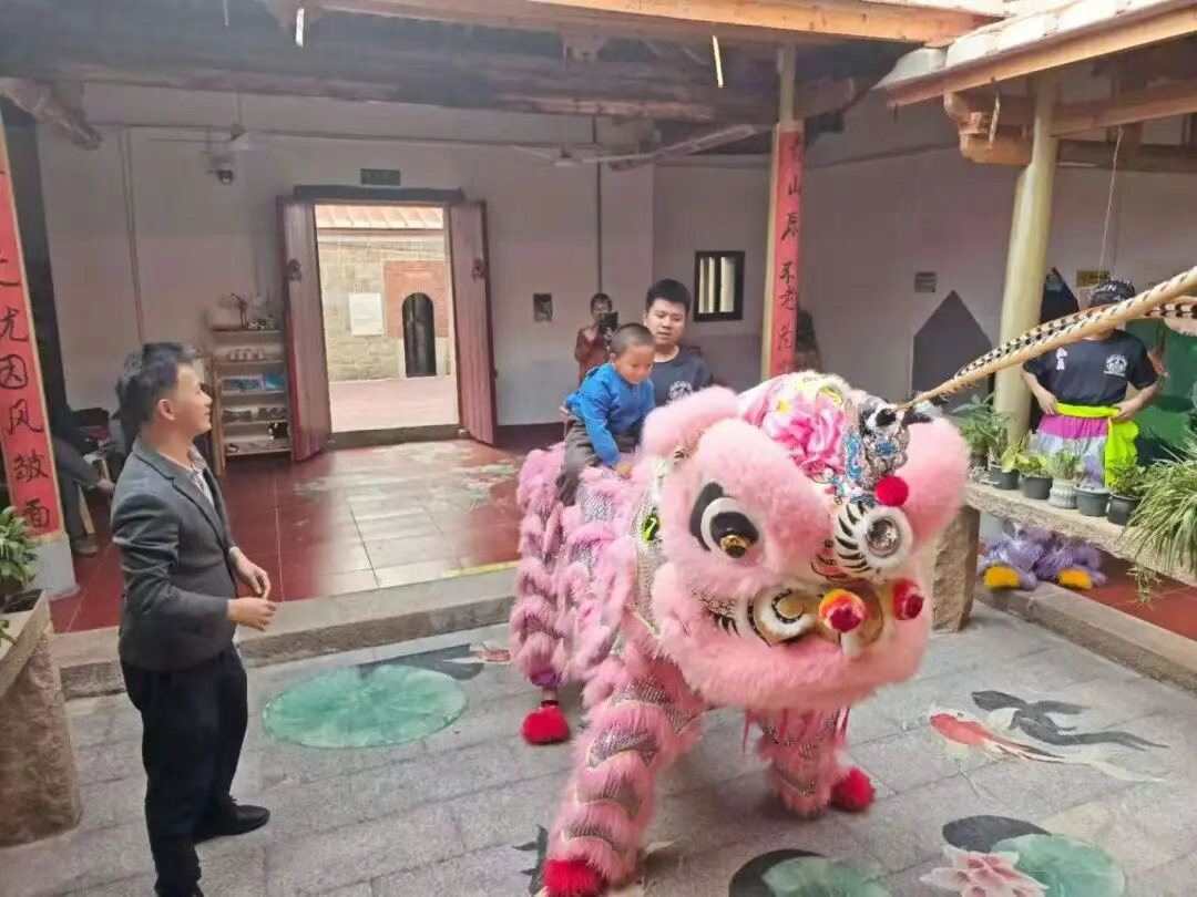理论知识过后,最令人期待的舞狮表演闪亮登场!伴随着铿锵有力的锣鼓声,志愿者们操控着色彩鲜艳的狮头,腾、挪、闪、扑,将瑞狮的灵动与威武展现得淋漓尽致。孩子们纷纷化身“小狮子”,在志愿者的指导下体验舞狮的乐趣,学堂里瞬间变成一片欢乐的海洋。
