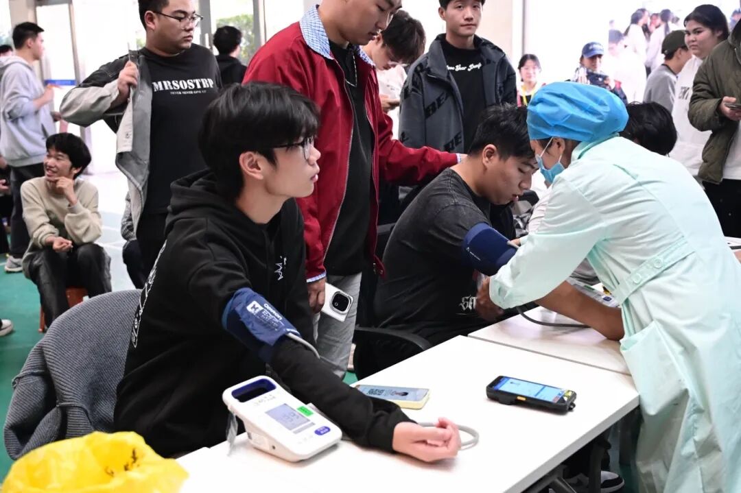 活动现场秩序井然,不少同学提前到场等候,带着参与公益的心意有序排队。在志愿者的引导下,大家依次填写个人基本信息表和健康征询表,遇到不清楚的地方,志愿者会当场解答疑问、指导填写规范。完成表格后,同学们前往体检区,逐一进行血压测量、血液质量筛查等基础检查。