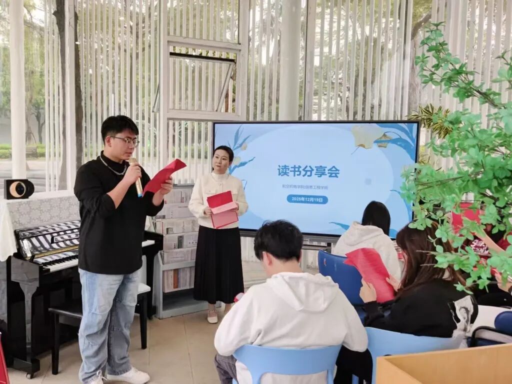 在读书会的书香氤氲里,航空机电学院/信息工程学院的同学们跟随陈静老师一同翻开书页,品读那些沉淀岁月的哲思,汲取文字里的力量,丰盈内心的天地。愿每一本书都是一把钥匙,解锁你我认知的边界;愿每一次阅读都是一场相逢,伴你我遇见更好的自己。