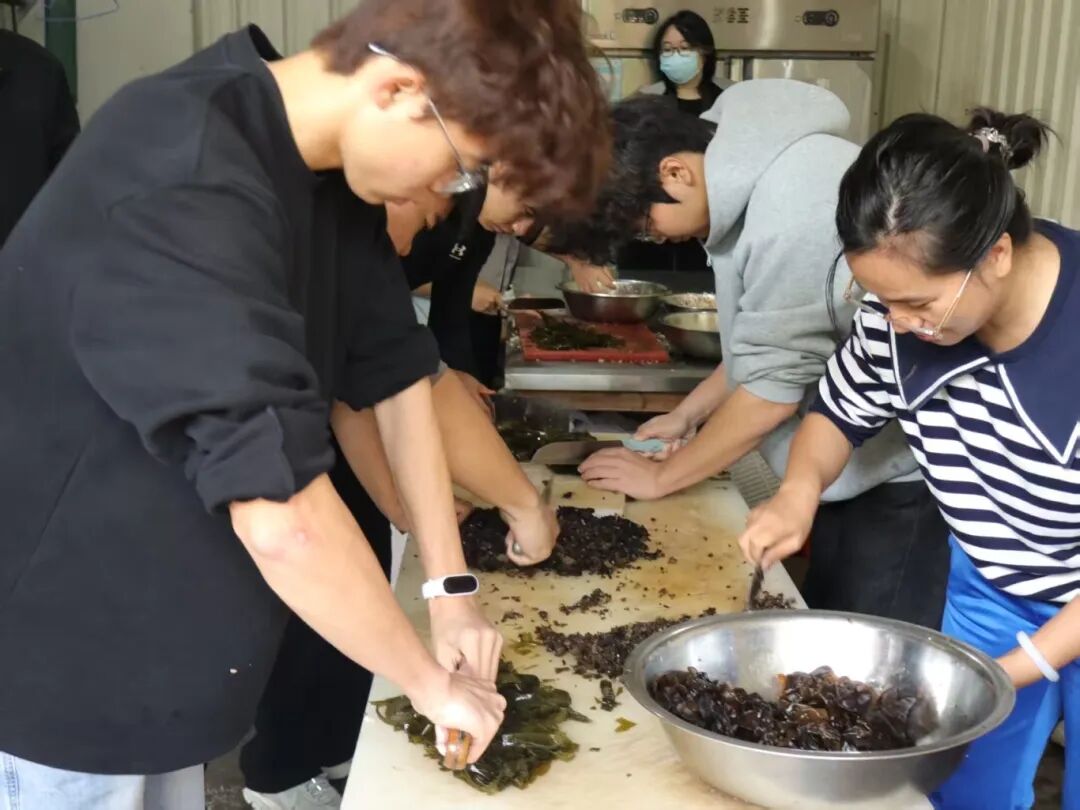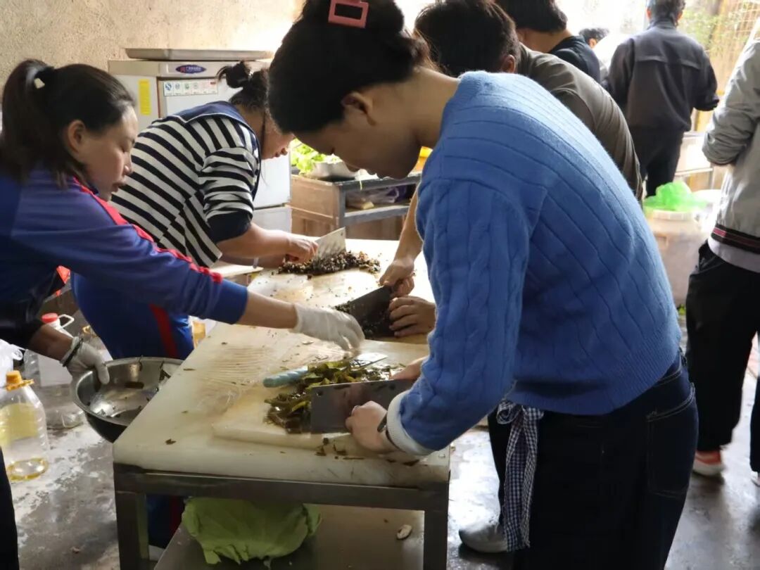 另一部分志愿者则主动承担起后勤工作,认真择菜、切菜,有条不紊地为午餐忙碌,默默做好保障。