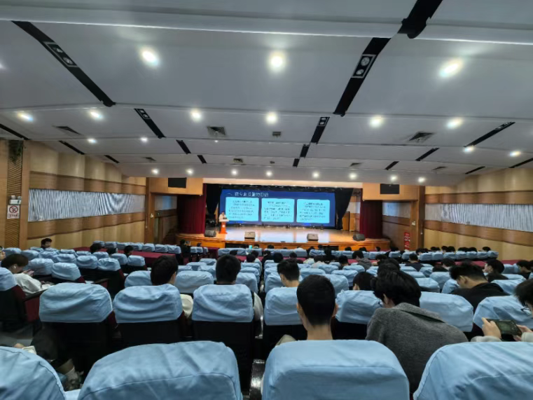 随后,校企合作单位代表——中就科技(福建)有限公司余斌老师登台分享。他结合企业真实案例,展示了AIGC(生成式人工智能)在短视频脚本创作、用户画像分析、精准广告投放等场景中的落地应用,并指出:”未来的新媒体人才,不仅要会‘用工具’,更要懂‘判真伪’、守‘伦理线’。”其务实而前瞻的发言引发在场学生强烈共鸣。